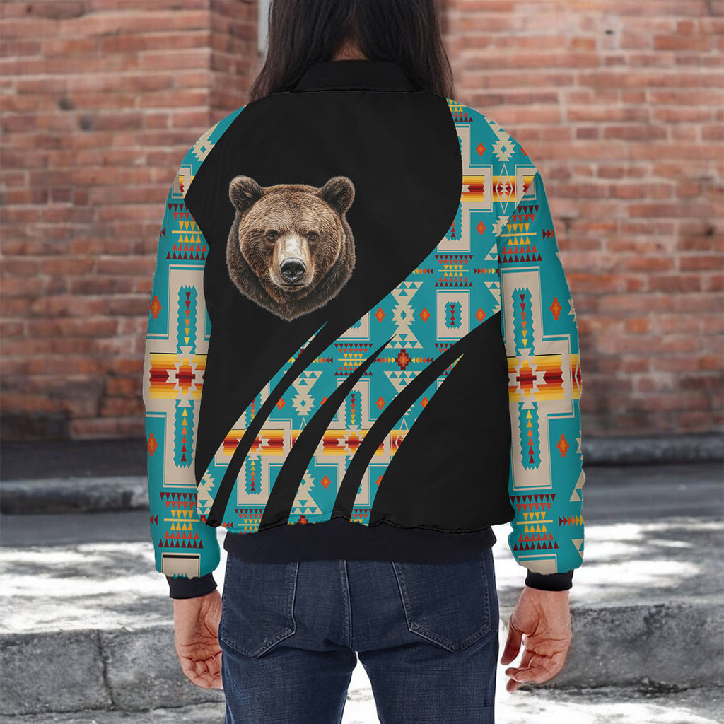 GB-HW000813v3 Bear Native American Bomber Jacket With Sleeve Pocket