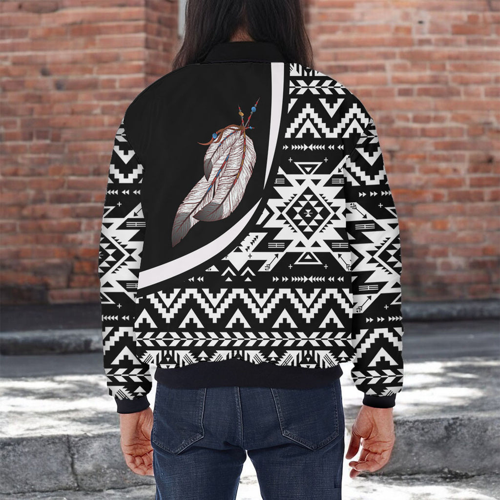 BJ000152 Feather Native American Bomber Jacket With Sleeve Pocket