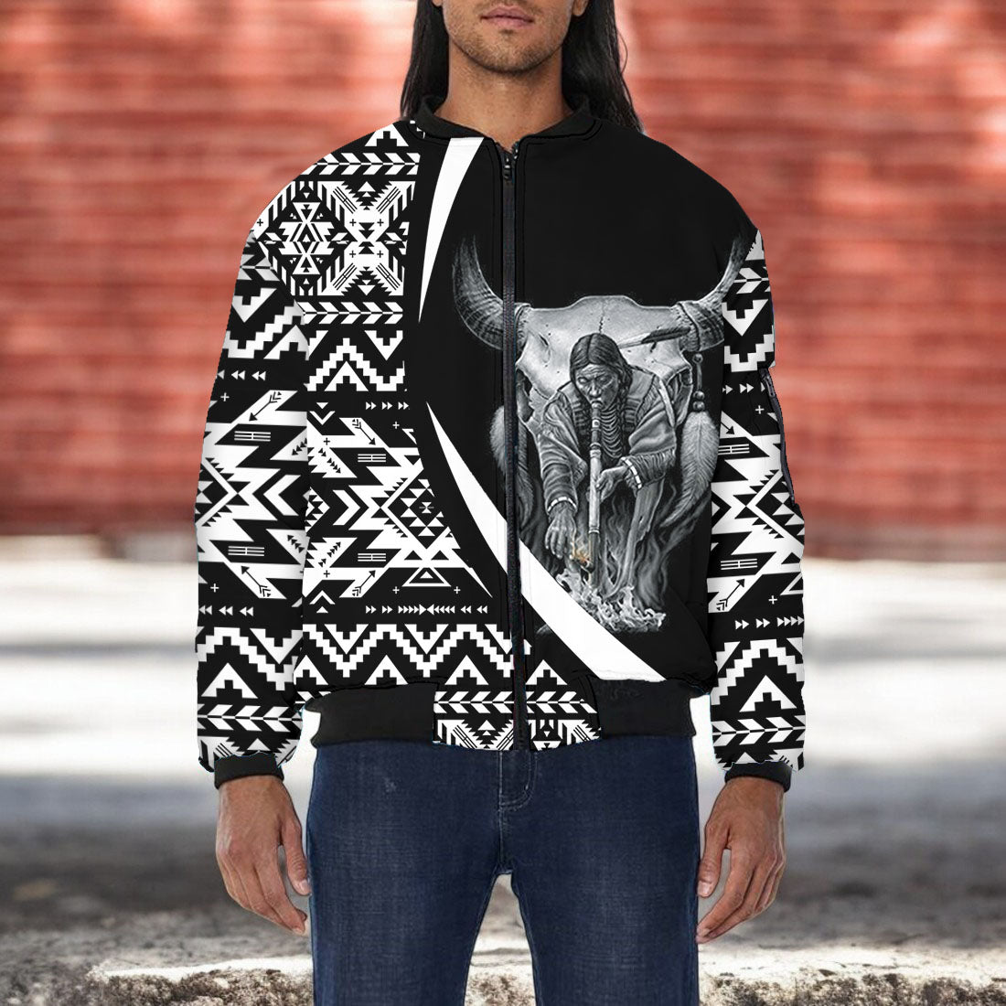 GB-HW000291 Native American Bomber Jacket With Sleeve Pocket