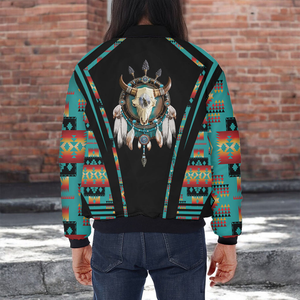 GB-HW000300v3 Bison Native American Bomber Jacket With Sleeve Pocket