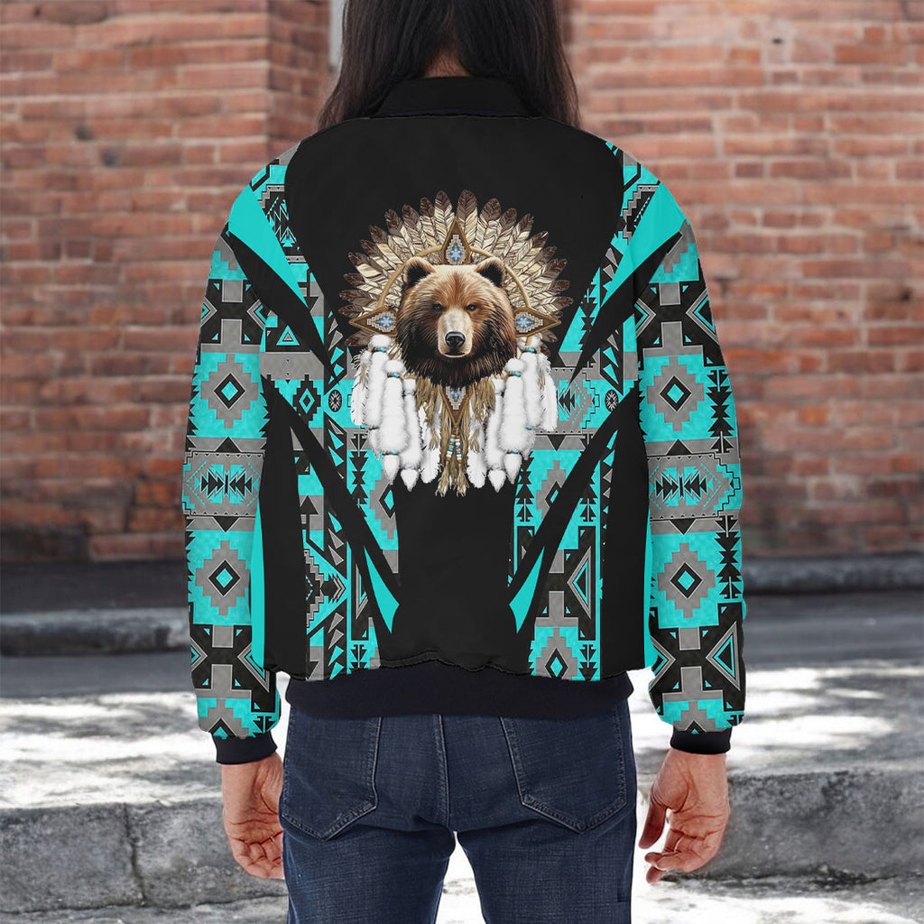 GB-HW000672v2 Bear Chief Native American Bomber Jacket With Sleeve Pocket