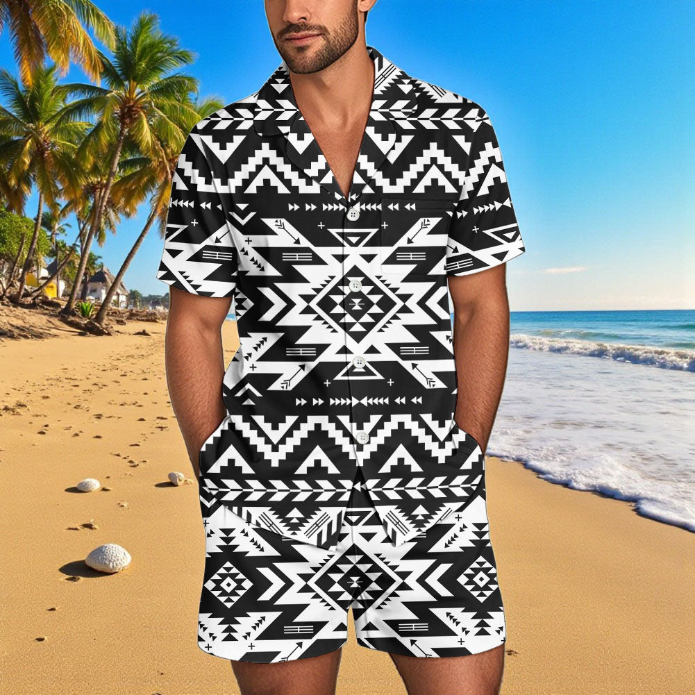 GB-NAT00441 Native American Men Short Sleeve Button Pajamas