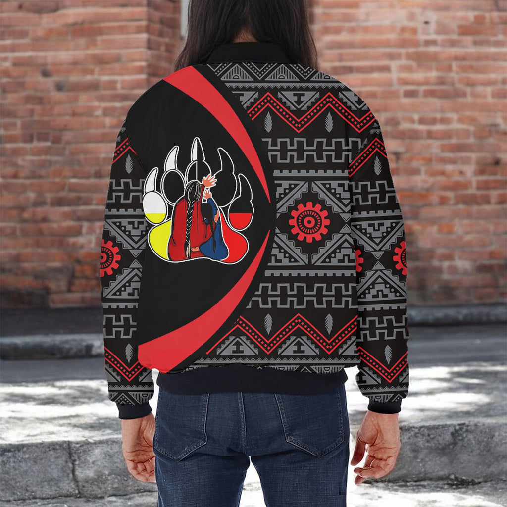 BB251225M05 Grandma Bear Native American Bomber Jacket With Sleeve Pocket