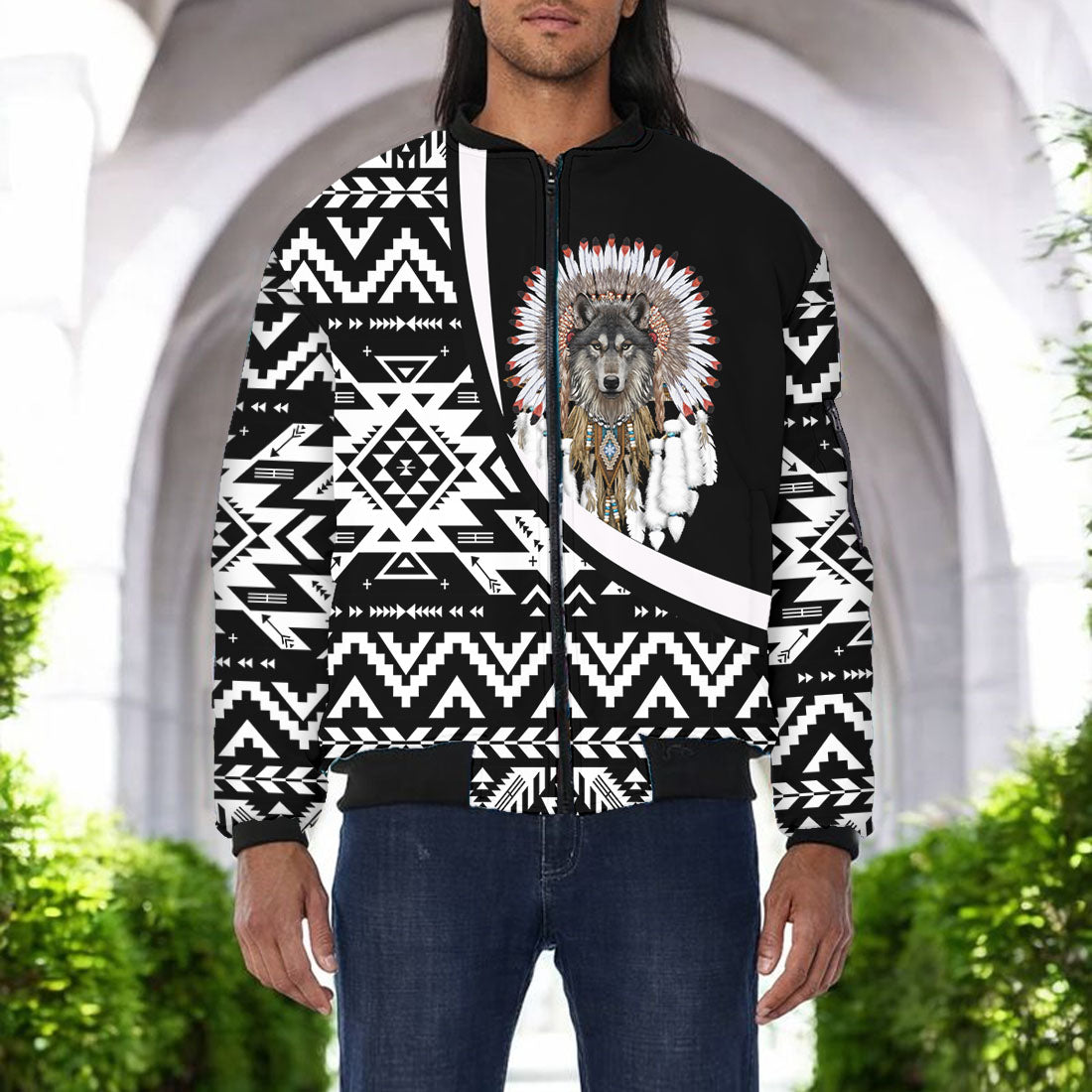 BJ000152 Wolf Native American Bomber Jacket With Sleeve Pocket