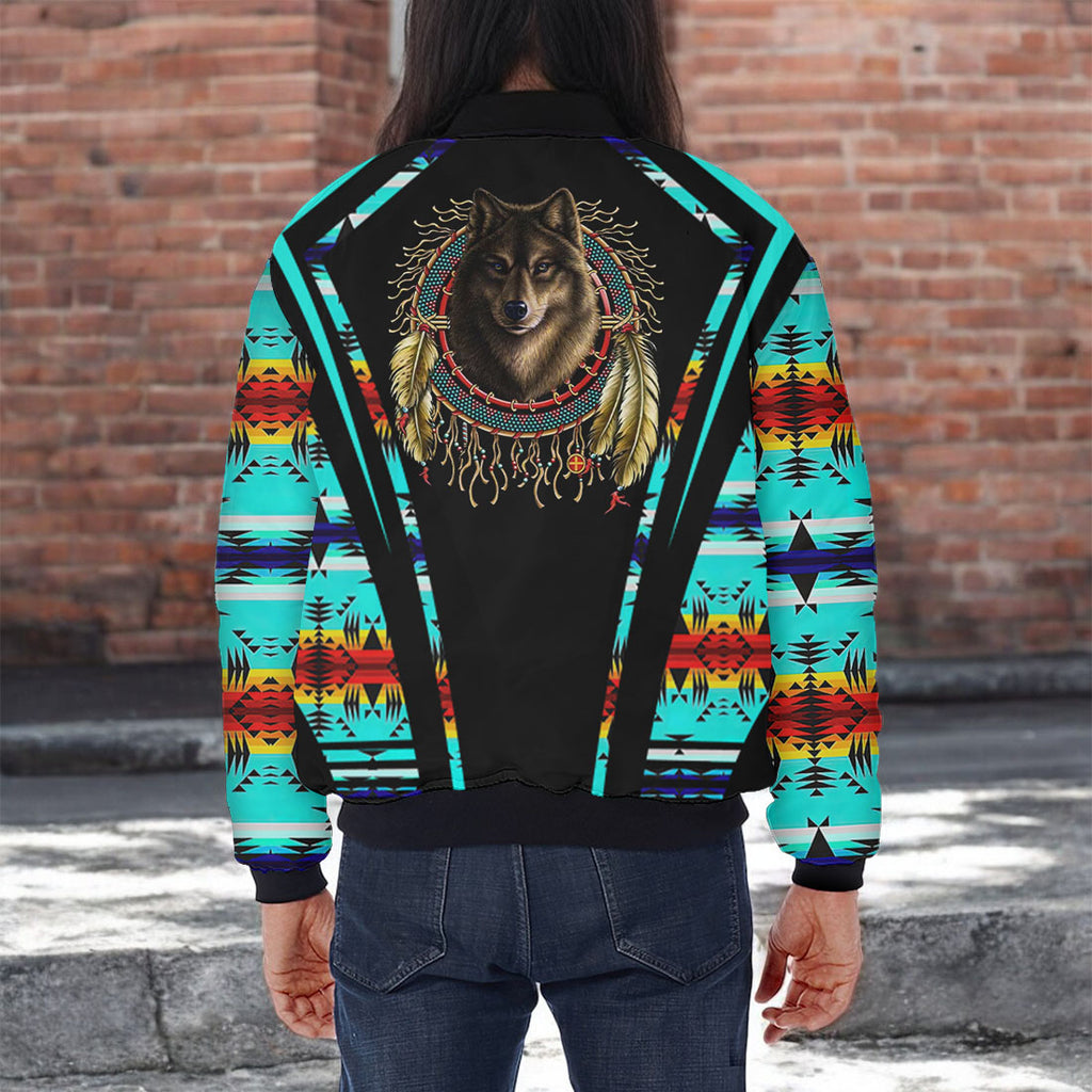 GB-HW000309v2 Wolf Native American Bomber Jacket With Sleeve Pocket
