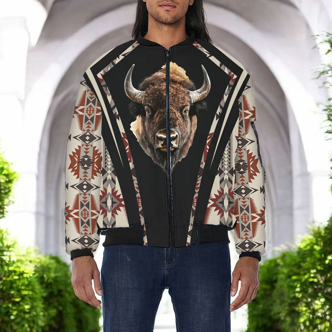 GB-HW000328v2 Bison Native American Bomber Jacket With Sleeve Pocket