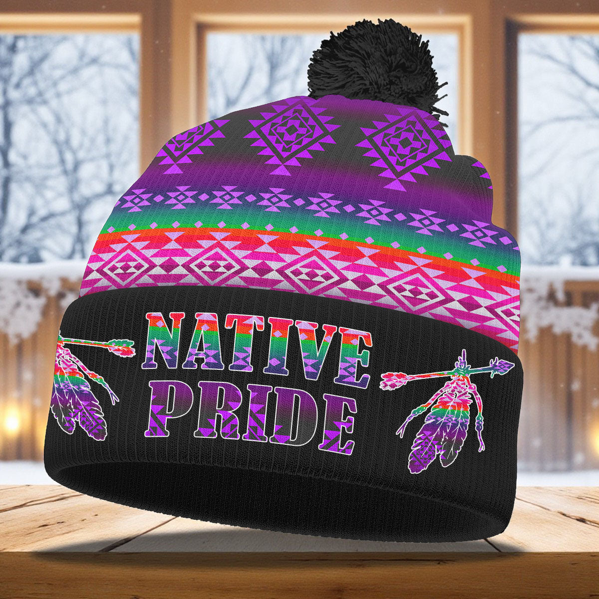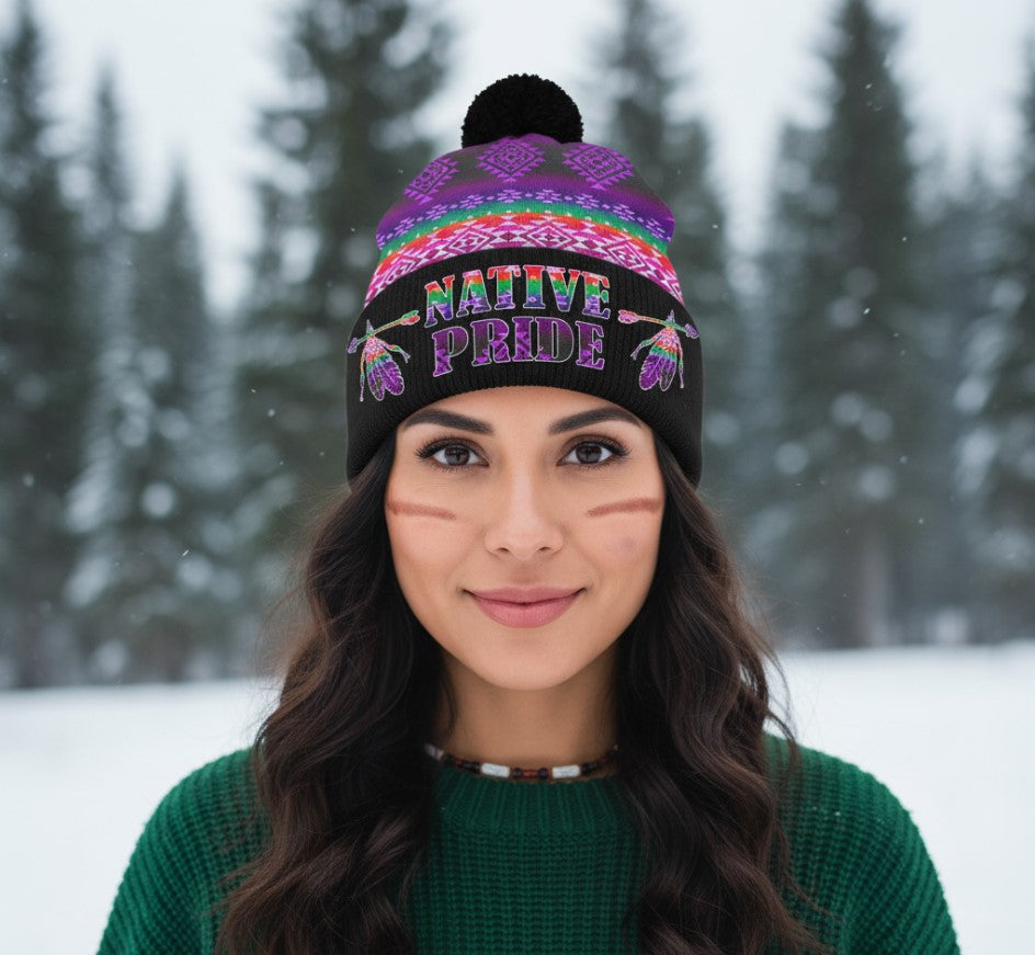 3AMSZZ22-02 Native American Knitted Hat With Pom-Pom
