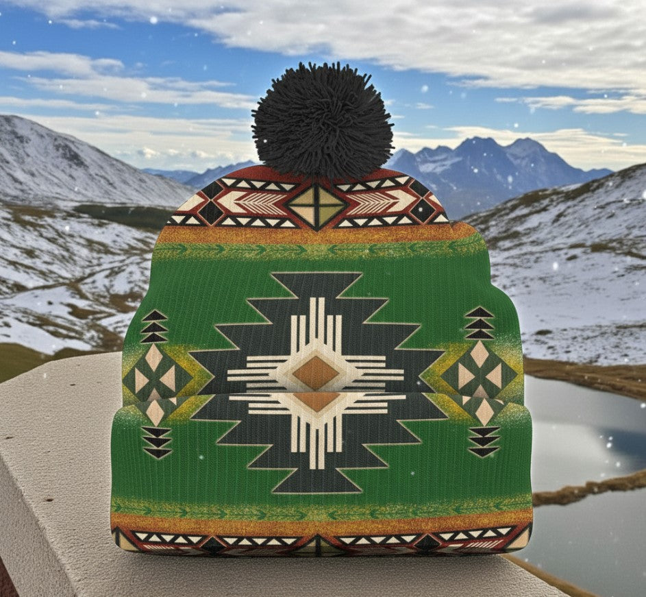 GB-NAT0001 Native American Knitted Hat With Pom-Pom
