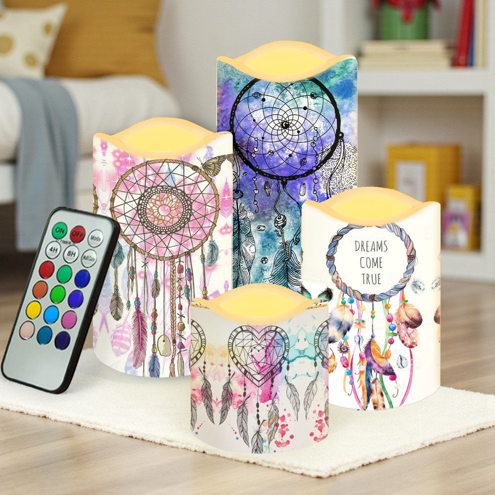 N7-28 Dreamcatcher Pattern Native American Bullet candles - Set of 4