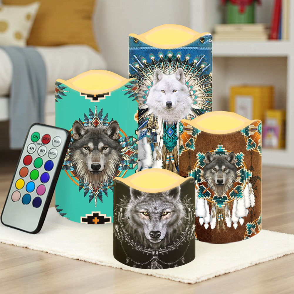 N7-38 Wolf Pattern Native American Bullet candles - Set of 4