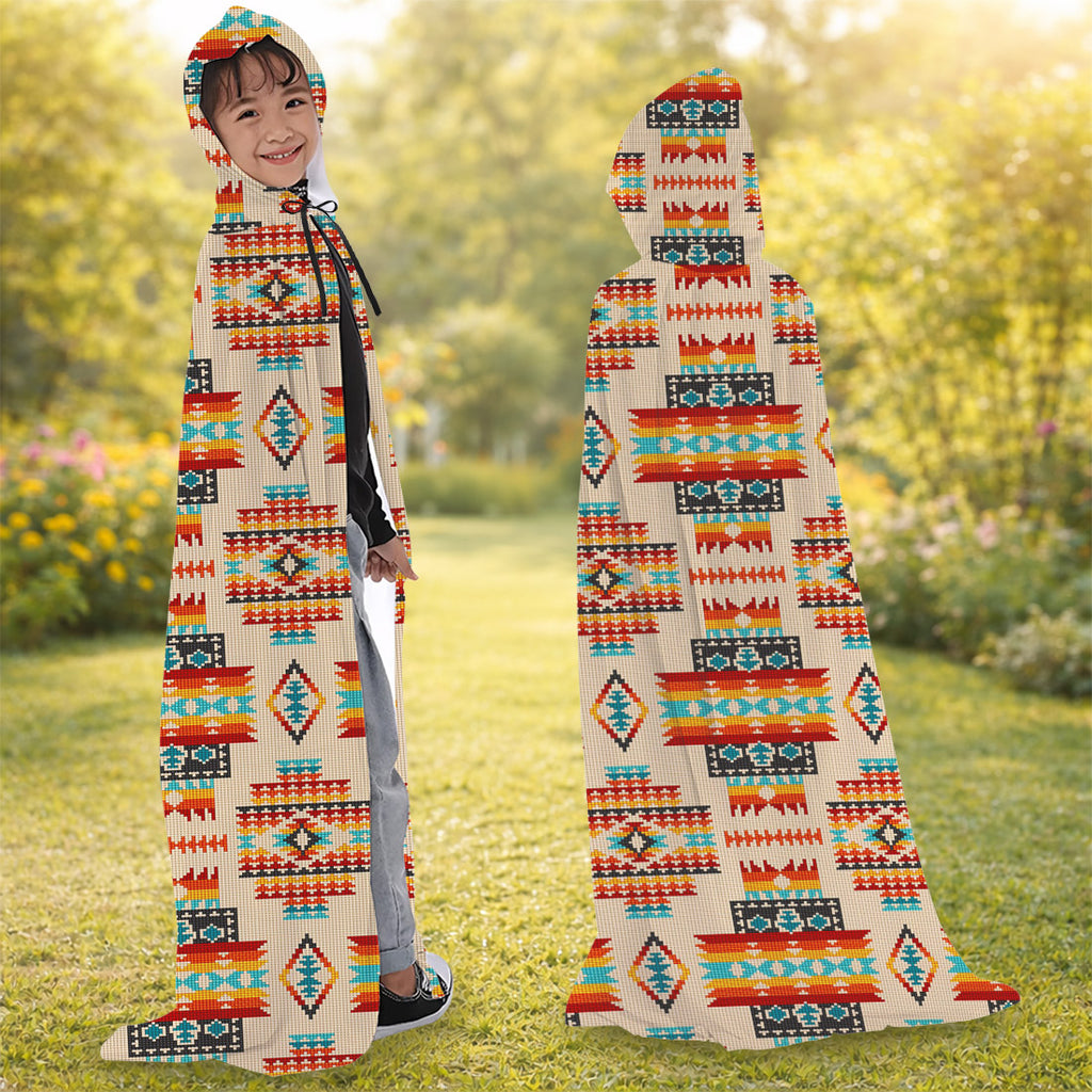 GB-NAT00402-03 Native American AOP Unisex Hooded Cloak for Kids and Adults