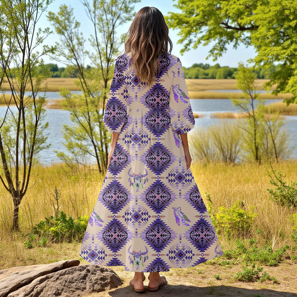 GB-NAT00744-06 Native American Women Puff Sleeve Maxi Dress