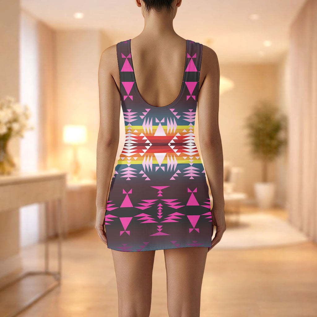 GB-NAT00653 Native American Women Sleeveless Bodysuit Dress