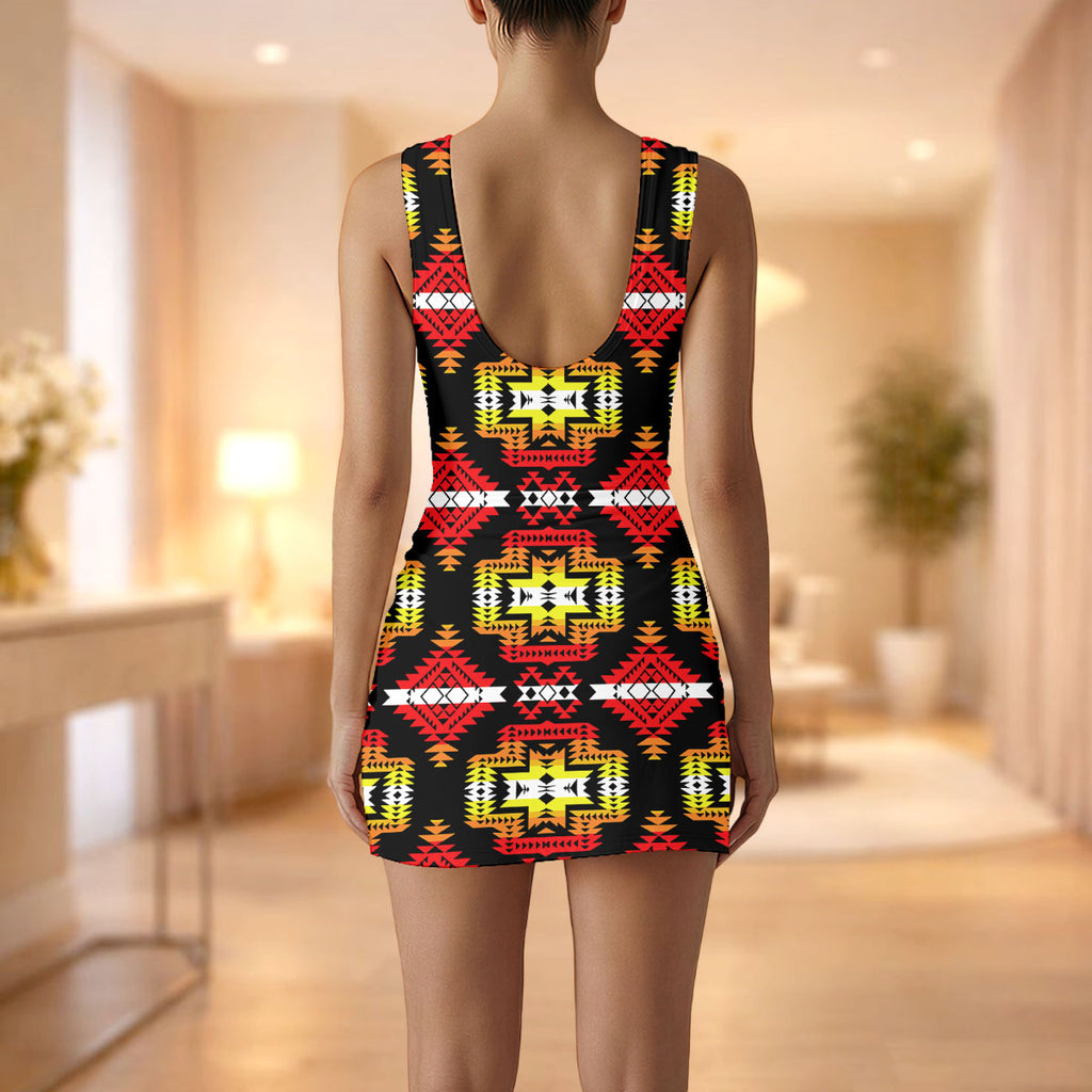GB-NAT00656 Native American Women Sleeveless Bodysuit Dress