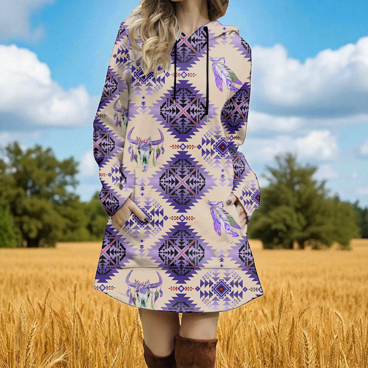 GB-NAT00744-06 Native American Women Longline Hoodie Dress