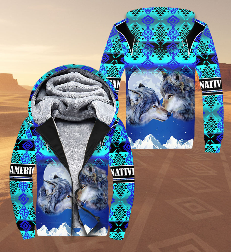 SH251118M06 Wolf Native American 3D Fleece Hoodie