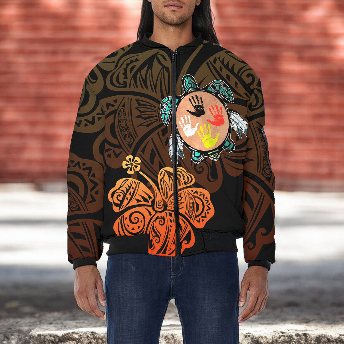 DS250805M01v7 Turtle Native American Bomber Jacket With Sleeve Pocket