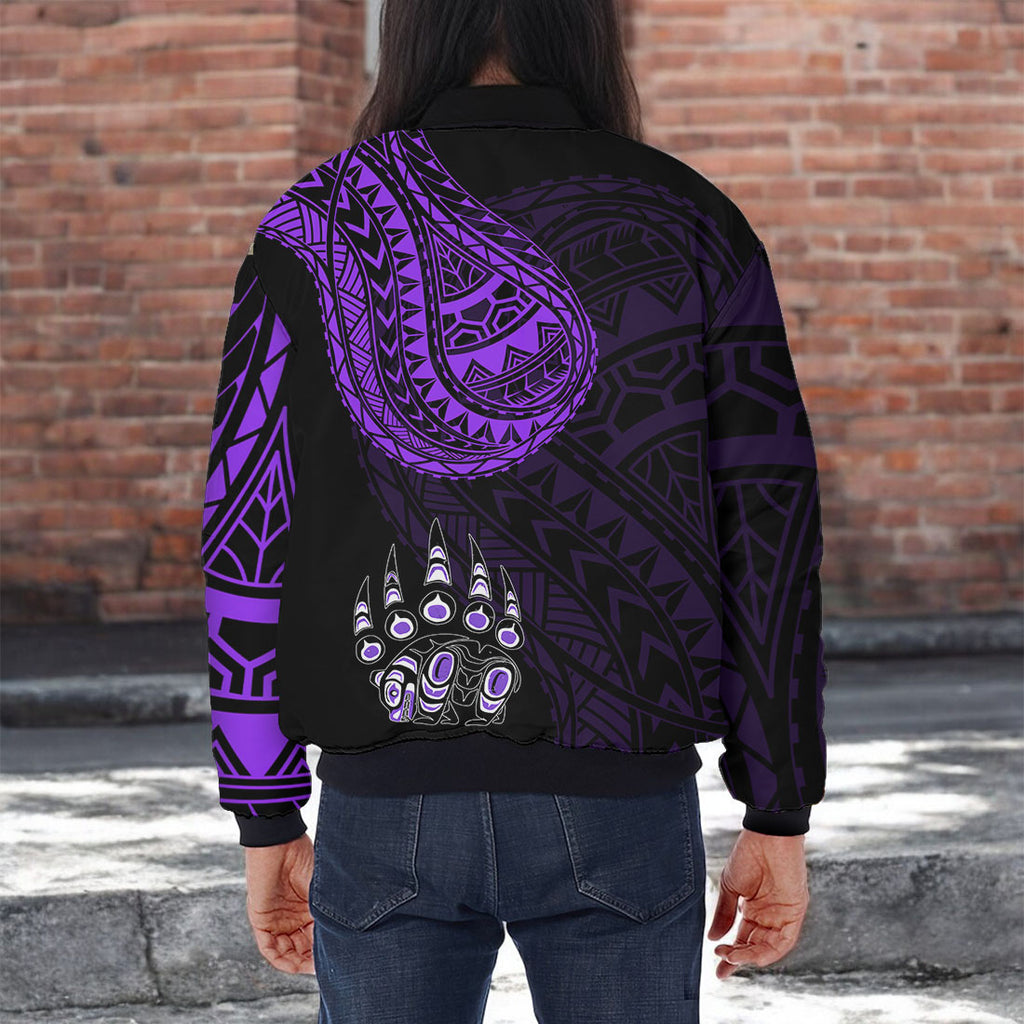 DS250807M01v36 Bear Native American Bomber Jacket With Sleeve Pocket