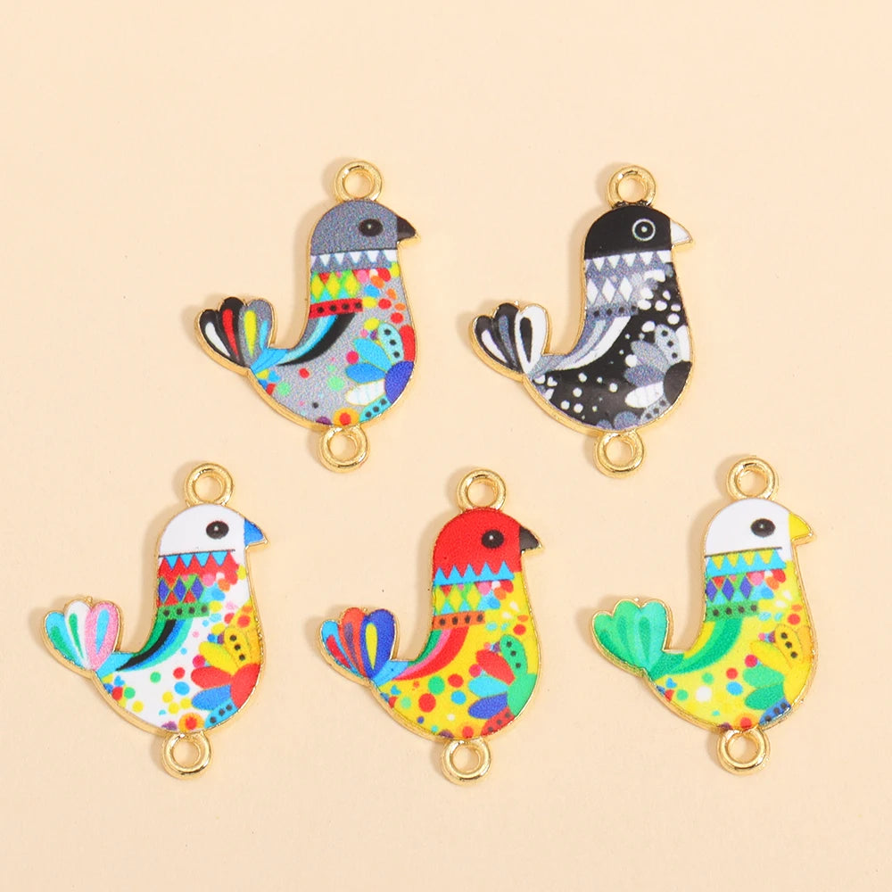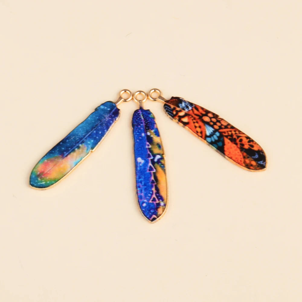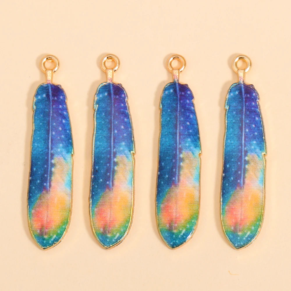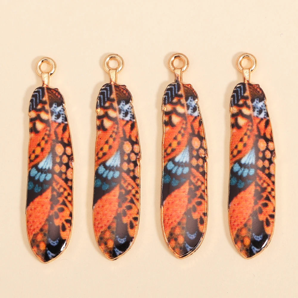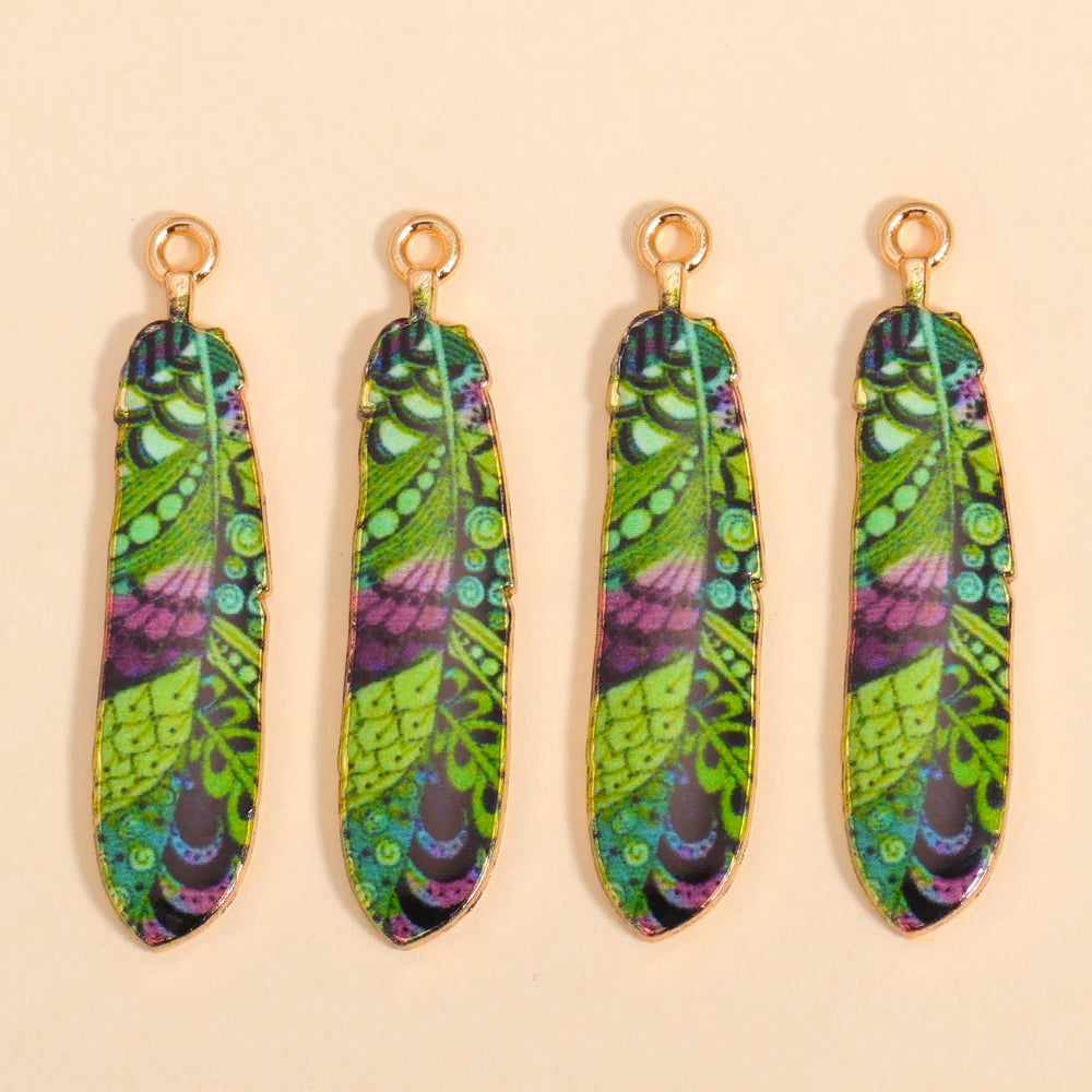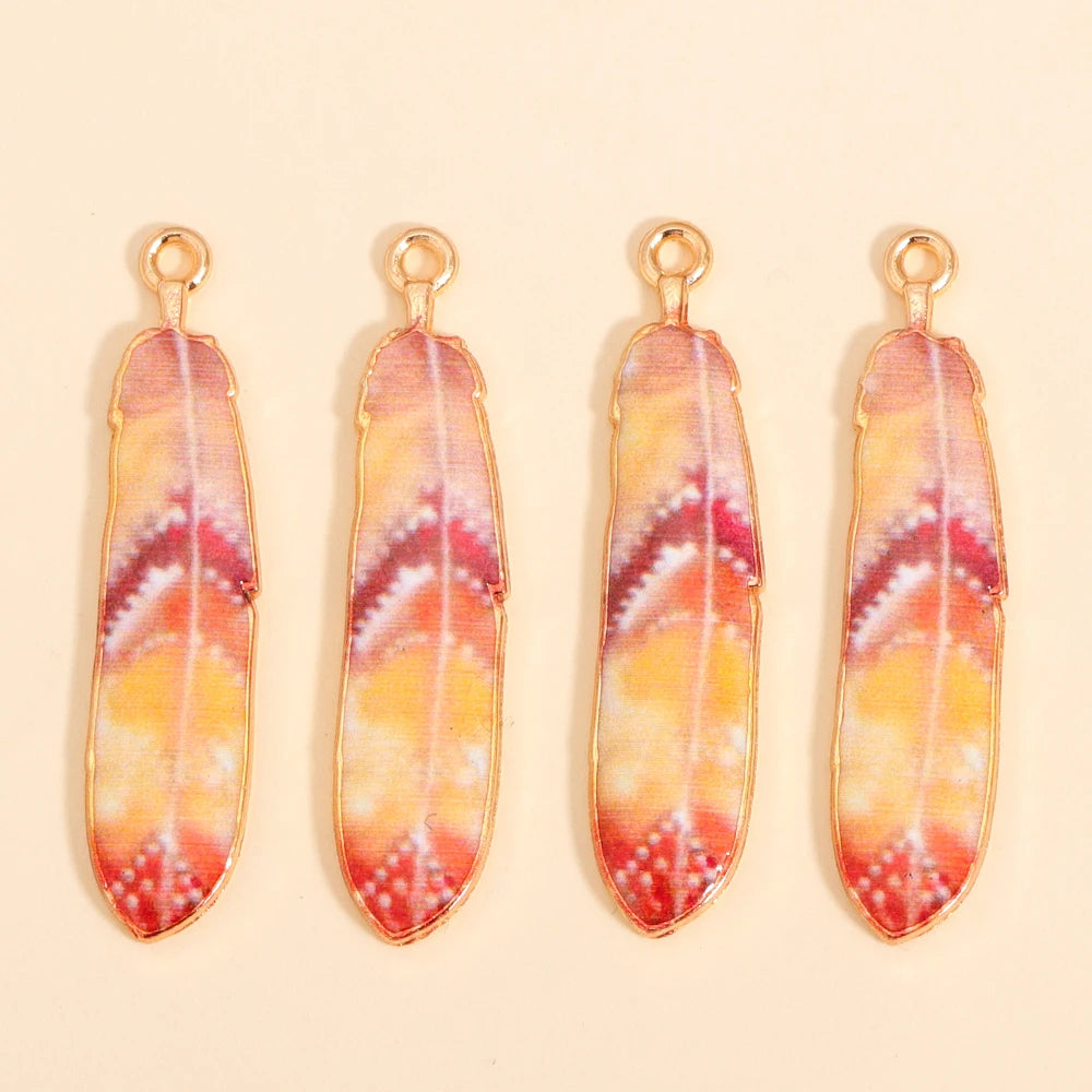 Each feather-shaped charm is crafted from durable zinc alloy metal with a beautiful gold-tone finish, featuring colorful enamel patterns that add a cheerful, romantic touch to any creation. Perfect for DIY enthusiasts, this set is ideal for making earrings, necklaces, bracelets, keychains, or other handmade accessories.