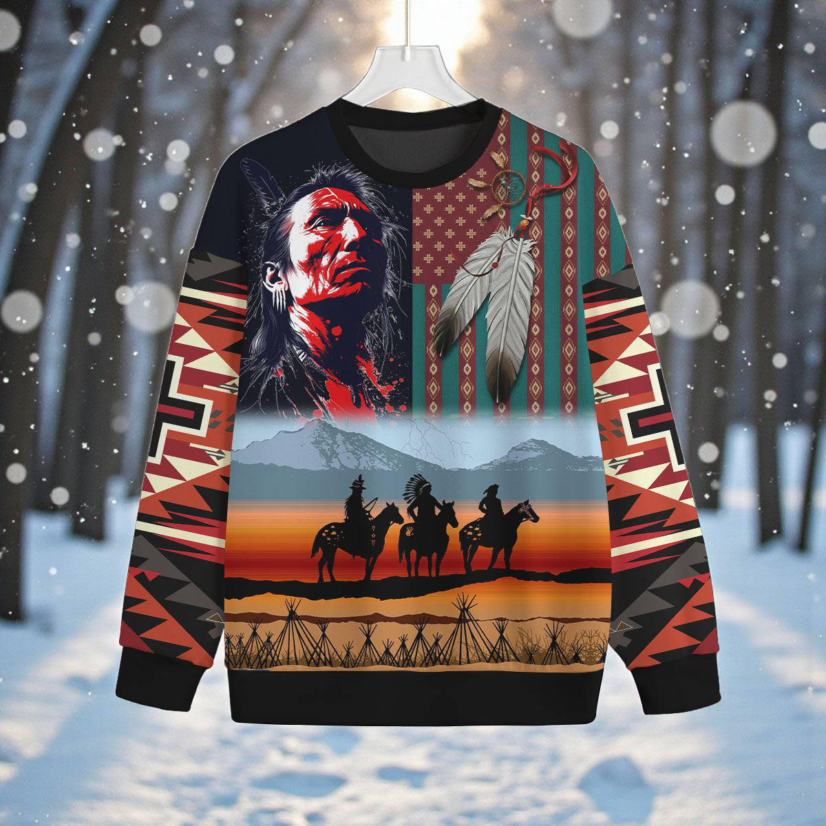 HD251101M13 Native American Unisex Drop-shoulder Knitted Fleece Sweater