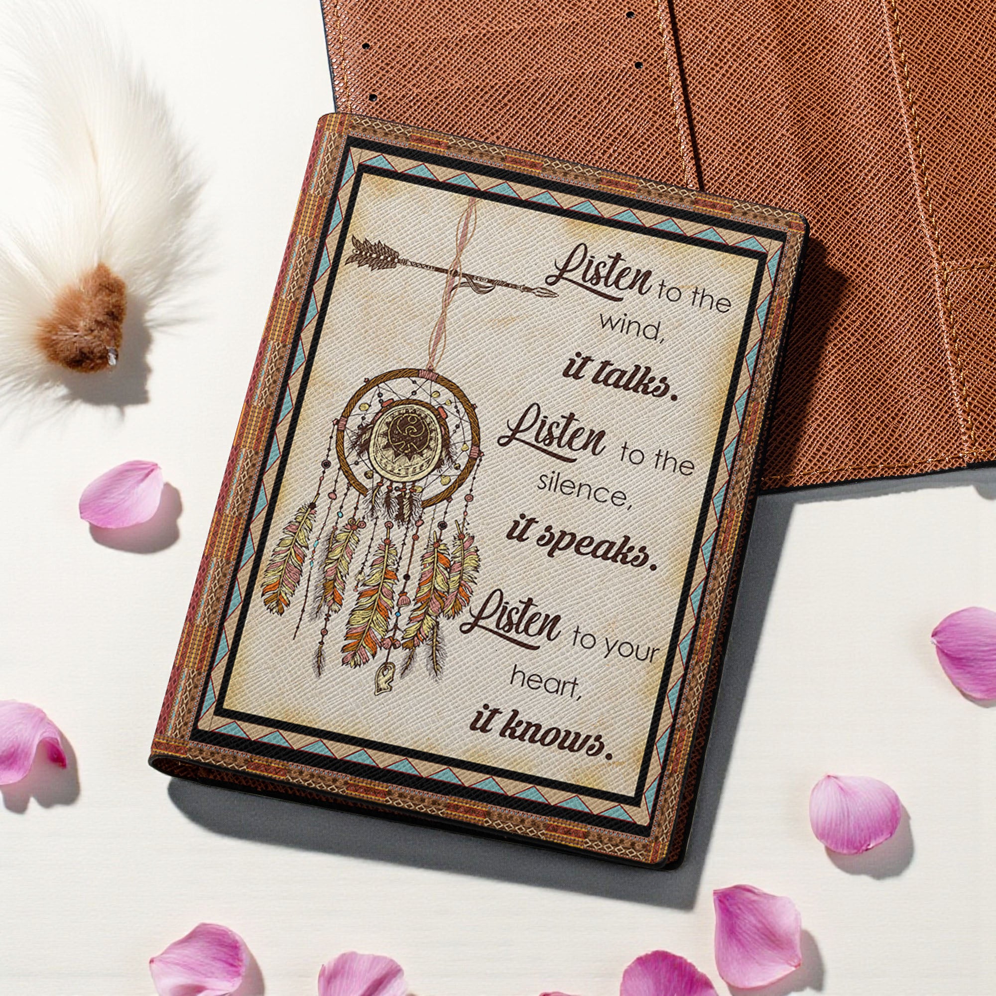 Listen To the Wind Native American Leather Passport Wallet