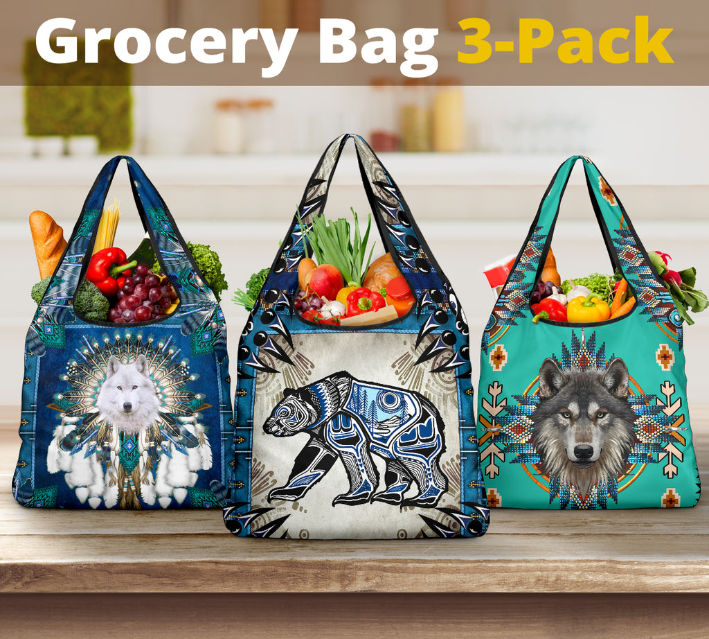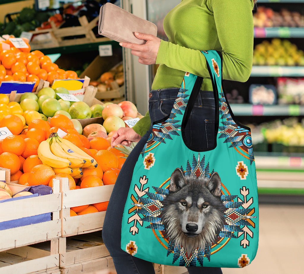 GCB251205M13 Bear and Wolf Native American Grocery Bag