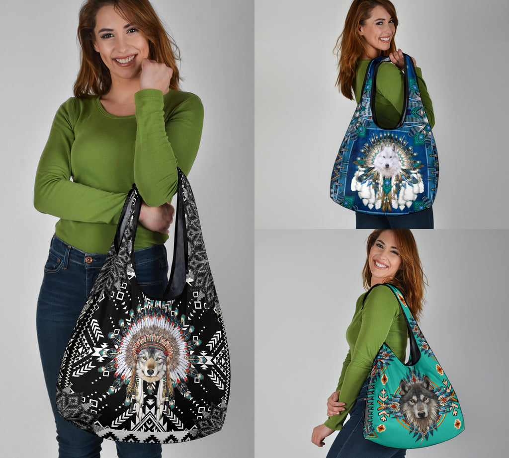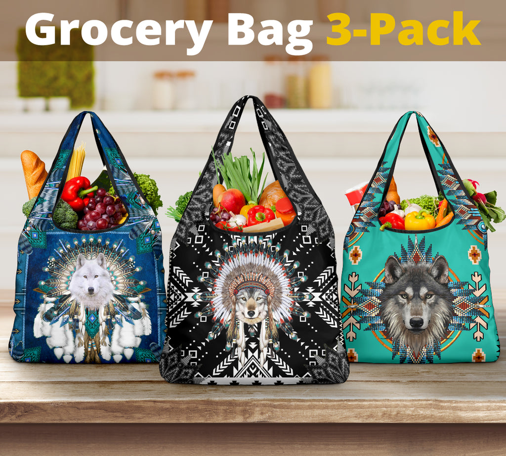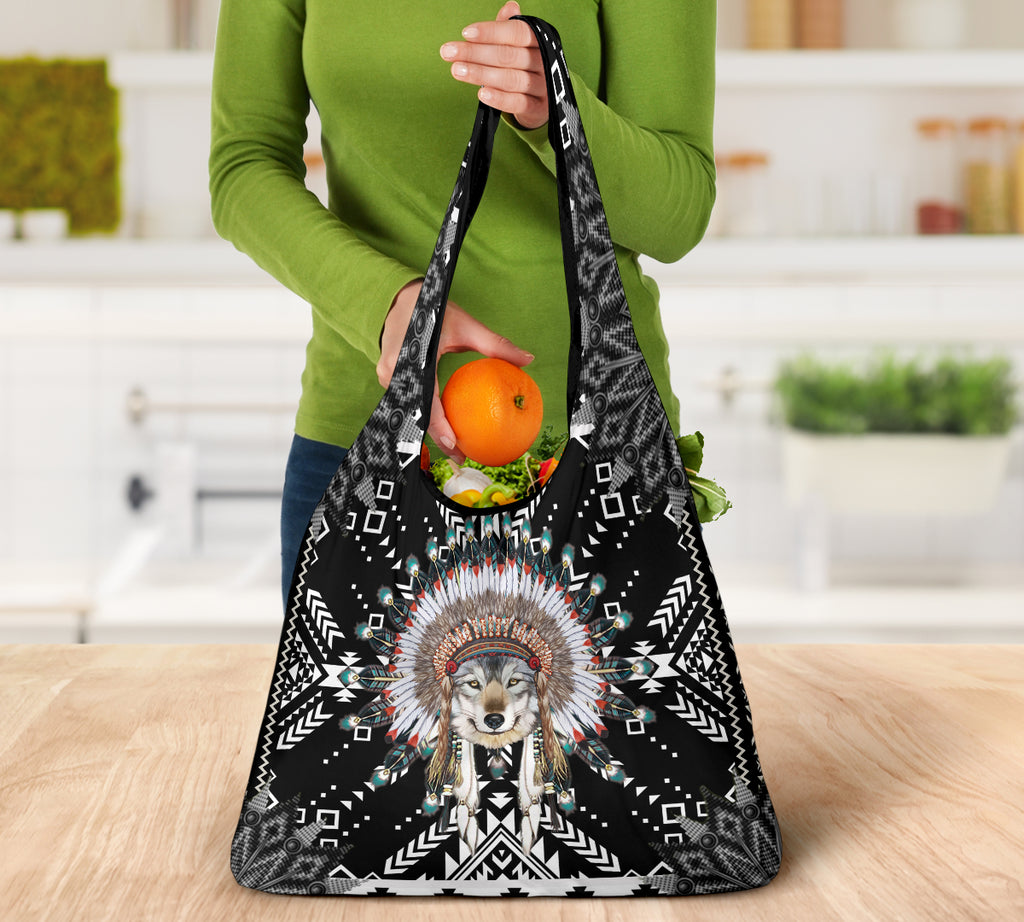 GCB251205M02 Wolf Native American Grocery Bag