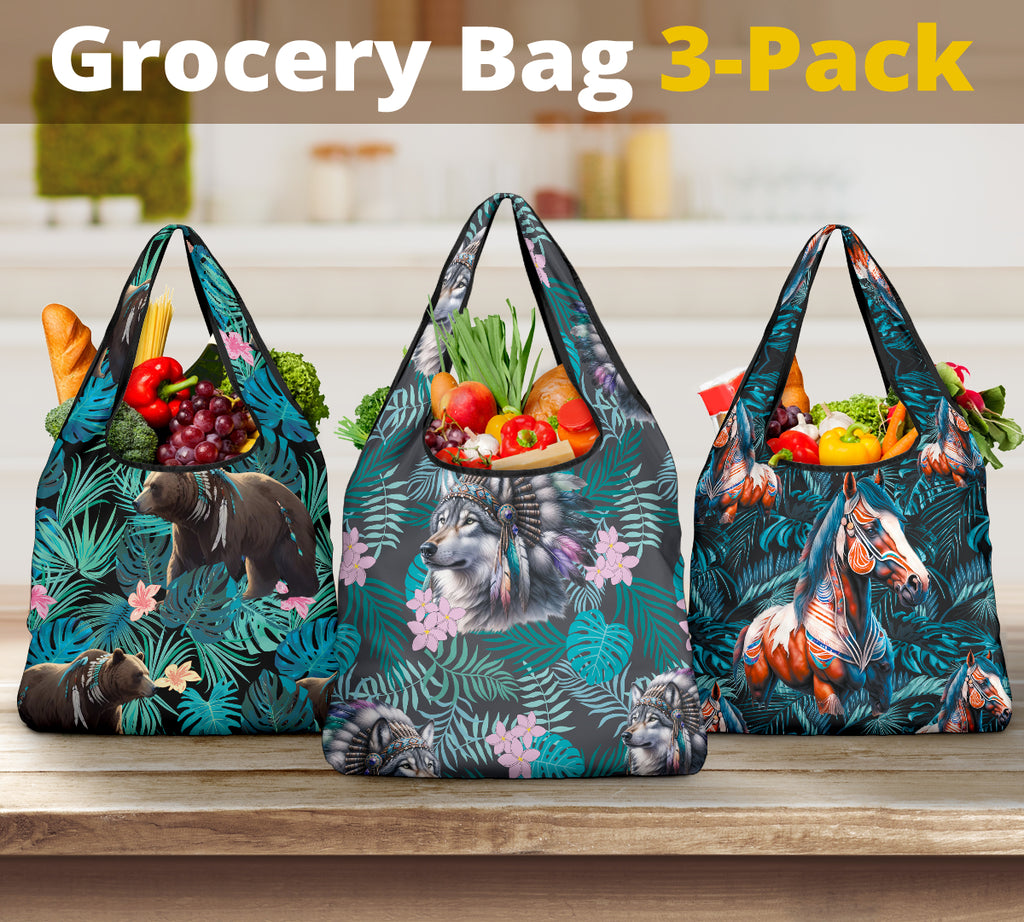 GCB251205M06 Tropical Animals Native American Grocery Bag