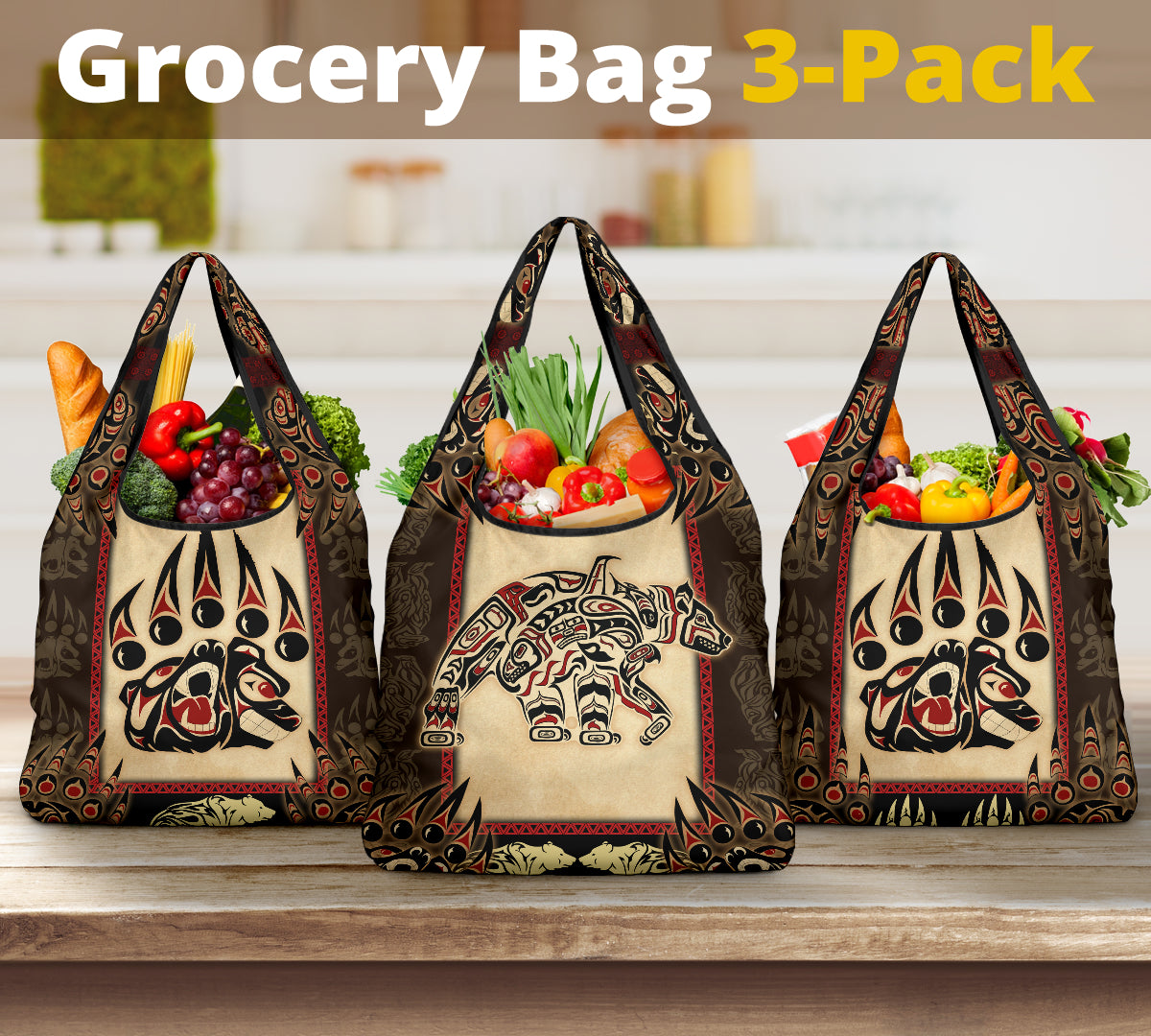GCB251205M09 Bear Native American Grocery Bag